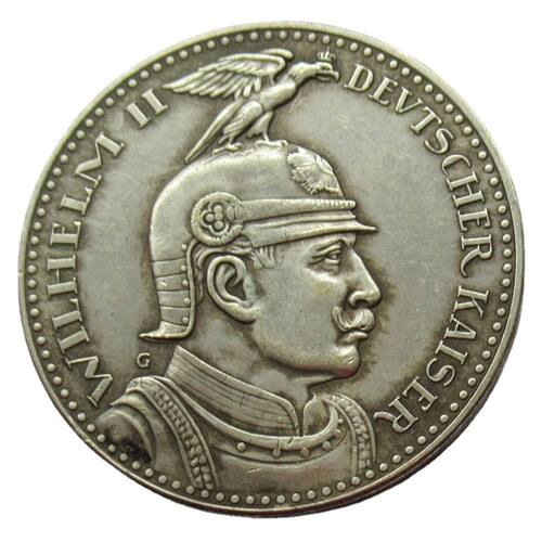 Material: cobre Peso: 35 g Tamanho: 4 x 0,3 cm Embalagem: 1 x moeda Design histórico do Kaisers Wilhelm II — Apresenta um retrato impressionante do Kaisers Wilhelm II, o último imperador alemão, com águias simbolizando o poder imperial. Cobre prateado de alta qualidade — Esta moeda comemorativa é feita de cobre durável com acabamento prateado, oferecendo uma aparência autêntica e duradoura. Peça comemorativa de 1913 — Uma réplica perfeita da moeda alemã de 5 marcos de 1913, refletindo a rica história imperial do país. Símbolo da herança alemã — celebra o legado da Alemanha Imperial sob o comando do Kaisers Wilhelm II, uma adição essencial a qualquer coleção da história europeia. Ótima para exibição ou coleção — Com seus 4 cm de diâmetro e detalhes intrincados, esta moeda é um item de coleção atraente, ideal para numismatas ou entusiastas da história.