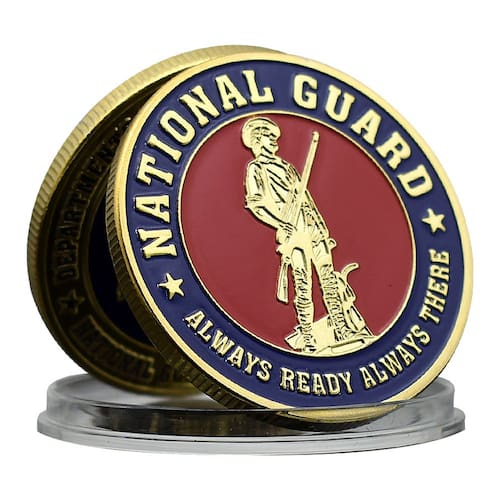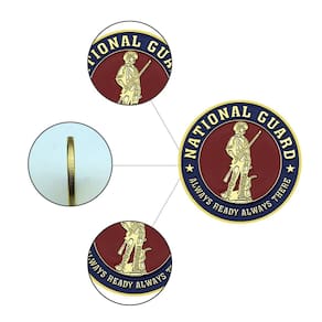 Material: ferro Peso: 35 g Tamanho: 4 x 0,3 cm Embalagem: 1 x Coin National Guard Tribute Design — apresenta o histórico soldado Minuteman com o lema “Always Ready, Always There” e letras ousadas da Guarda Nacional. Detalhes vívidos em esmalte — O fundo esmaltado vermelho e azul com detalhes em relevo dourado cria um impressionante item de coleção patriótico. Fabricação em ferro sólido — Feito de ferro durável com detalhes precisos em relevo e um peso substancial de 35 g para qualidade premium. Tamanho compacto da tela — mede 4 cm de diâmetro e 0,3 cm de espessura, perfeito para vitrines ou coleções de moedas militares. Perfeito para colecionadores — Uma peça significativa para entusiastas da Guarda Nacional, veteranos e aqueles que honram a herança militar.