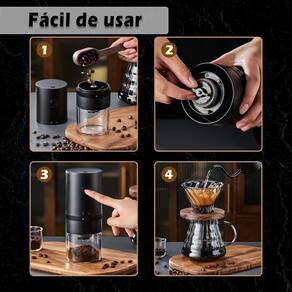 Moedor de café elétrico portátil, 4 xícaras pequeno moedor cônico automático moedor de grãos de café -2875 -PRETO Sobre este item O moedor de rebarbas elétrico tritura consistentemente os grãos de café entre as rebarbas cônicas de cerâmica. Este processo também retém o sabor e o aroma naturais do café melhor do que um moedor de lâminas. O funil pode moer até 1 onça/30 gramas suficiente para 4 xícaras de grãos de café em um único lote. O sistema totalmente automático permite uma moagem conveniente e sem as mãos. Coloque este mini moedor de café recarregável sem fio e USB em sua bolsa ou mala, você pode desfrutar de café moído na hora a qualquer hora, em qualquer lugar, seja em casa, trabalho, viagem, caminhada ou acampamento... O moedor de café cônico portátil possui configurações de moagem múltipla para moer seus grãos de café para qualquer método de preparo desejado, de expresso a prensa francesa, - de ultrafino a extra-grosso. Com o moedor de café elétrico , você nunca terá que se preocupar com grãos de café irregulares, independentemente do tamanho de moagem selecionado. Escova de limpeza incluída para facilitar a limpeza. A rebarba superior removível, a tremonha e a câmara são facilmente removidas para uma limpeza sem esforço. Nunca use água ou outros líquidos para limpar o interior do moedor/rebarbas de grãos de café expresso. Moedor de café é mais silencioso do que outros moedores de café no mercado. Moagem Cerâmica:Moedores de café usam rebarbas cônicas para triturar os grãos de café em pequenas partículas. Configurações de moagem: configurações de moagem contínuas, oferecendo ainda mais controle e precisão. Material: Rebarba feita de cerâmica de alta qualidade. Alguns especialistas em café também dizem que você obtém café com mais corpo a partir de grãos moídos com rebarbas de cerâmica. Capacidade:moedor de café permite moer café para uma ou quatro xícaras de cada vez. Portabilidade: tamanho portátil, você pode levar este moedor de café para qualquer lugar. Como escritório, camping, caminhadas, viagens etc. Recipiente: Recipiente transparente, para que você possa ver quanto café moeu. Marca: Não Informado