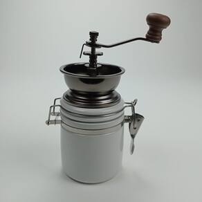 Moedor manual com corpo em cerâmica e metal. Permite ajuste de granularidade. Design compacto e fácil de usar.