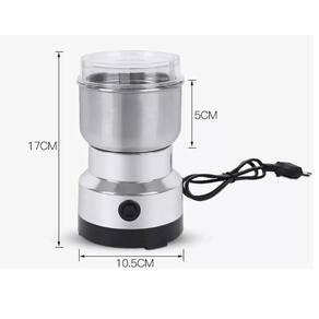 Contém - 01 aparelho moedor com lâmina e recipiente em inox. - voltagem 127v - largura 10,5cm altura 17cm80cm de cabo - adequado para moer grãos de café, amendoins, temperos, grãos de pimenta e cereias. moedor de café
