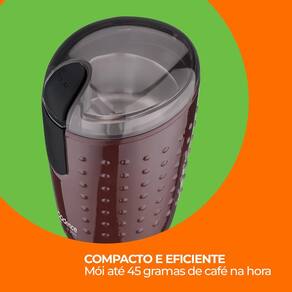 Compacto e portátil, é perfeito para uso doméstico, ocupando pouco espaço na cozinha. Suas lâminas em aço inox proporcionam moagem uniforme e durabilidade, enquanto o acabamento com pintura metalizada e gabinete em ABS adiciona um toque de sofisticação ao ambiente.