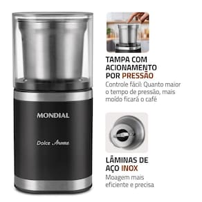 O Moedor de Café Mondial MCF-01-BI vai deixar seu café ainda mais delicioso! Com capacidade de 60g, é possível moer o café na hora, mantendo frescor, aroma e sabor irresistíveis seja para uma xícara ou para maiores quantidades.