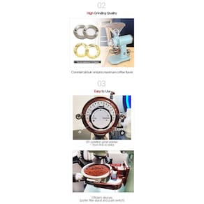 Características 1 Fácil desmontagem e limpeza. Pode ser desmontado e limpo manualmente sem chave de fenda A tremonha e o corpo podem ser facilmente separados. 2 Moagem uniforme e estável 20 níveis de moagem ultra fina uniforme e detalhada qualquer tipo de café pode ser expresso Uso de broca de aço inoxidável de 60mm para manter o sabor dos grãos 3 Design sofisticado Design sofisticado com cores pretas puras e acabamento manual Interruptor frontal maximiza a eficiência do trabalho. 4 Interruptor de sobrecarga montado para evitar o superaquecimento do motor. 5 Extratores antiestáticos evitam que o pó voe e se aglomere. Modelo Urbanic 070 Grinder Tamanho , 200 130 Peso , 3,85kg Rebarba 60mm Plana Tremonha , 250g Voltagem , 110v 50 60Hz Potência , 250w