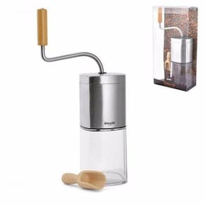 Moedor De Café Grãos Manual Moinho Cerâmica Bisetti Bisetti Bisetti produz itens de mesa e cozinha de alta qualidade desde 1945. O produto que mais identifica a empresa desde sua fundação tem sido o moedor de pimenta, seguido pelos moedores de sal e porta temperos. Moedor de café grãos manual moinho de cerâmica bisetti Não há nada melhor do que moer os grãos de café antes de qualquer tipo de preparo O moedor de café manual trieste é perfeito para o dia a dia O moinho é de cerâmica que manterá todas as características do café sem alterar seu aroma e sabor, e é inoxidável, proporcionando um desempenho consistente e durável. Permite as mais variadas regulagens para uso em cafeteira italiana, prensa francesa ou filtro. Corpo em acrílico e reservatório em aço inox. Reservatório de grãos de 40g. Medidas aproximadas do produto a x l x p cm : 27,5 x 14,0 x 7,0 Peso aproximado do produto kg : 0,390 Acompanha pequena pá para pegar o café Ean: 8015457157018