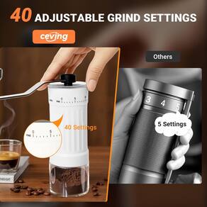 - 40 configurações externas ajustáveis de moagem – ao contrário dos moedores tradicionais com ajustes internos ocultos, nosso moedor de café manual possui 40 configurações externas precisas para um ajuste fino sem esforço. Basta girar o mostrador para mudar de expresso fino para prensa francesa - sem adivinhações, sem derramamentos bagunçados. Aproveite o controle total sobre sua moagem para um sabor mais rico em cada xícara!