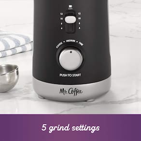 Mr. Coffee Moedor de café automático com 5 predefinições, capacidade para 12 xícaras, preto – ideal para uso doméstico e amantes de café expresso