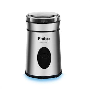 Moedor De Café Philco Grano Aroma Pmc01i Inox 127v O Moedor de Cafe Eletrico Grano Aroma da Philco permite que voce faca cafe fresquinho com grao moido na hora, Pratico, compacto e funcional, ele vai transformar o cafe do seu dia a dia em algo muito mais saboroso. Se voce deseja um aparelho simples, porem eficiente e super facil de mexer, o Moedor Grano Aroma e exatamente o que voce precisa. Com 200W de potencia e em alguns segundos de moagem, consegue moer 50 gramas de cafe. Philco Grano Aroma conta com laminas de aco inox, porta-fio e pes antiderrapantes que garantem mais seguranca na hora do uso. Seu principal destaque esta na agilidade e potencia de moagem. Compacto, ele e de facil manuseio e cabe em qualquer lugar.