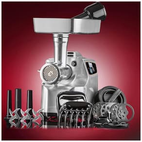O pacote completo de moagem doméstica STX Magnum 1800W Platinum Edition resfriado a ar patenteado apresenta um moedor elétrico de potência máxima de 1800 watts pesado e possui uma bandeja de carne de alta capacidade que facilmente comporta mais de 3 libras. de carne. O sistema patenteado de resfriamento por indução de ar com capuz apresenta uma potência de motor travada de 1.800 watts e um disjuntor para segurança. Este moedor é um moedor de tamanho n 12, não um moinho de tamanho n 5 ou n 8 como moedores menores, saída de diâmetro de 2 1 , 2 polegadas para carne moída e tubo de alimentação de 2 polegadas de diâmetro. Combinando o Trado de Carne com a Tecnologia AVI Entrada Variável Avançada e a Bandeja Alimentadora de Alto Volume que permite facilmente moer 220 a 260 Lbs de Carne por Hora Dependendo do Tamanho da Placa de Moagem usada e do Tipo de Carne sendo moída. Este moedor também pode lidar facilmente com ossos moles, como ossos de frango, coelho, esquilo e codorna. Este triturador Magnum 1800W Platinum Edition também inclui 1 cabeçote de trituração de alumínio polido e bandeja de carne de alta capacidade, 3 lâminas de corte de aço inoxidável de grau 304, 5 tamanhos de placas de moagem, 1 placa de recheio de salsicha, 3 tamanhos de salsicha Tubos de recheio, 1 Acessório para fazer Kubbe , Kibbe e 1 Empurrador , Stuffer de carne de palma fácil de usar, um par de garras de carne e prensa deslizante de hambúrguer Marca: Não Informado