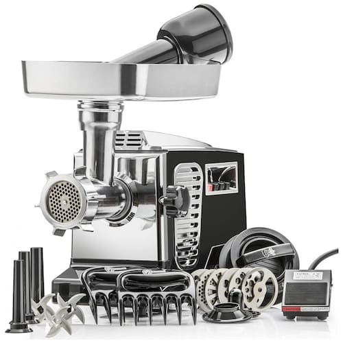 Possui 2.000 watts de potência de pico de saída com 3 velocidades alta, baixa, reversa e disjuntor de segurança Inclui pedal de controle uso opcional Ligue o moedor ao pedal de controle para uso com as mãos livres O sistema patenteado Quad Air Cooling do moedor virtualmente dobrará a vida útil deste produto 3 lâminas de aço inoxidável, 5 placas de moagem, 1 placa de beaner, conjunto de 3 tubos de enchimento e acessório Kubbe este é um moedor de tamanho 12 com uma saída de diâmetro de 6cm para moagem e um tubo de alimentação de 5cm de diâmetro. O picador de carne elétrico com resfriamento a ar Quad STX Turboforce II Platinum Edition Tamanho 12 Modelo STX 4000 TB2 PD Pedal de controle, 6 placas de esmerilhamento, 3 lâminas de corte de aço inoxidável, acessório Kubbe, conjunto de 3 salsichas Tubos, 1 Burger Slider Patty Press e um par de garras de picador de carne. Este moedor STX é o máximo em potência, estilo e desempenho. Este moedor elétrico de carne é uma bela e uma fera. O estilo futurista de nossa Turboforce II foi uma criação de nosso Departamento de Modelagem , Design de Arte e foi projetada para complementar qualquer balcão de cozinha. Disponível agora em preto ou branco com detalhes em Chrome, tornando mais fácil combinar seus aparelhos existentes. O motor dentro desta unidade possui 2.000 watts de potência de pico de saída e isso permite que ele moa até os cortes mais difíceis de carne sem atolar no mínimo. As 4 entradas de resfriamento de ar compõem nosso projeto patenteado de resfriamento de ar Quad, projetado para manter o motor deste moedor Ultra Cool, que praticamente dobrará a vida útil deste produto. Especificações Tensão 110, 120 Volts 60 Hz Até 2.000 Watts Potência de Pico de Saída Sob Carga 600 Watts de Potência de Funcionamento Sem Carga Moagem 102kg de Carne por Hora Ligado Alta velocidade dependendo do corte e tipo de carne que você está moendo Sistema de 3 velocidades alto, baixo e reverso 1 botão de parada , redefinição Marca: Não Informado