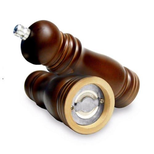 Este lindo e sofisticado moedor de sal e pimenta é fabricado em madeira.