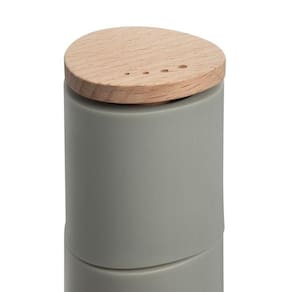 O Moedor de Sal e Pimenta Madrid é produzido em plástico polipropileno, tampa em madeira de faia e sistema de moagem em cerâmica. É um acessório prático que permite inserir grãos de pimenta ou sal para moer e temperar alimentos. Oferece uma estética moderna e prática.