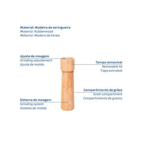 Moedor de Sal e Pimenta Realce Madeira Seringueira 13 cm Tramontina - Especificações Técnicas