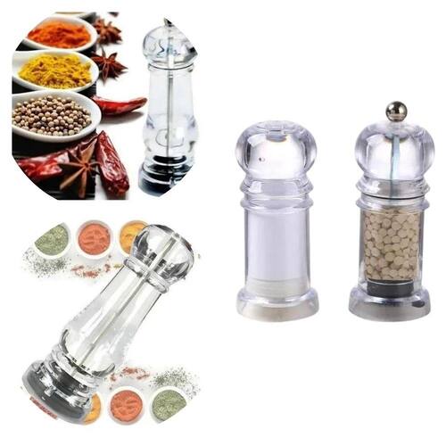 Moedor de Temperos E Saleiro Acrílico de Mesa Manual Kit com 2 Peças