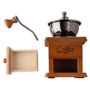 Moa sua própria mistura de grãos de café frescos e crie seu sabor favorito pessoal. Fácil de operar, coloque os grãos de café no moedor e, em seguida, gire a alça repetidamente, o café moído cairá na gaveta. O corpo principal é feito de madeira de faia, o que é conveniente para gavetas para entrar. A gaveta frontal pode capturar pó de café e pode ser usada para fazer seu próprio café acabado de fazer a qualquer momento.