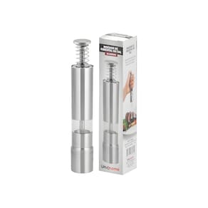 O Moedor Manual de Sal, Pimenta e Temperos em Alumínio é um utensílio prático e durável, ideal para realçar o sabor dos alimentos com temperos sempre frescos. Com design ergonômico e mecanismo de moagem eficiente, permite ajustar a granulação conforme a preferência, garantindo controle total sobre o tempero durante o preparo. Fabricado em alumínio resistente, é leve, fácil de manusear e oferece longa vida útil, tornando-se indispensável para quem valoriza praticidade e qualidade na cozinha.