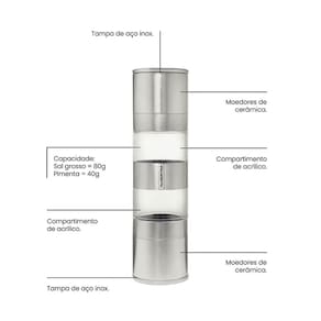 OBS: Veja na descrição os itens que acompanham o jogo. COMPONENTES DO KIT: 1 - Jogo de Faca Premium 3 PÇ - Tramontina 24499811 1 - Moedor de Sal e Pimenta Realce Duplo em Aço Inox e Acrílico com Moinho em Cerâmica - Tramontina 61655000 Jogo de Facas Premium com Lâminas em Aço Inox e Cabos de Polipropileno Branco 3 Peças - Tramontina 24499811 : 90 dias para vícios ou defeitos de fabricação. As lâminas de aço inox tem maior durabilidade do fio devido ao tratamento térmico. Os cabos de polipropileno possuem maior resistência e durabilidade. Podem ir à máquina de lavar louças facilitando seu dia a dia. - Cor do cabo: Branco - Material do cabo: Polipropileno - Peso Líquido: 0,20 kg. - Peso Bruto: 0,25 kg. - Medidas Embalagem: 2,0cm A x 16cm L x 38cm C - Conteúdo do jogo: 1 - 24472186 - Faca Utility Lâmina 6 15,24cm 1 - 24473187 - Faca para Cozinha lâmina 7 17,78cm 1 - 24470184 - Faca para Frutas e Legumes Lâmina 4 10,16cm Moedor de Sal e Pimenta Realce Duplo em Aço Inox e Acrílico com Moinho em Cerâmica - Tramontina 61655000 - Prático e elegante - O moedor duplo de sal e pimenta, possui design clean e arrojado, levando beleza e praticidade para seu dia a dia - Possui dois recipientes de moagem, uma na parte superior e uma na parte inferior da unidade. Para moer do outro lado, basta vira-lo de cabeça para baixo e continuar a moagem. - Possui engrenagens de alta resistência, proporcionando maior durabilidade. - Com ajuste de moagem, possui regulador de tamanho de grão, para que seja ajustado conforme seu gosto. - Garantindo higiene e beleza. - Material: acrílico + aço inox. - Moedores de cerâmica. - Compartimento de acrílico. - Tampas de aço inox. - Capacidade: Sal grosso = 80 G Pimenta = 40 G - Peso Líquido: 0,22 kg. - Peso Bruto: 0,25 kg. - Produto Produto: 20cm A x 6,2cm diâmetro - Medidas Embalagens: 20cm A x 6,2cm L x 6,2cm C Marca: Não Informado Ean: 7890100015690