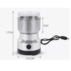 Contém - 01 aparelho moedor com lâmina e recipiente em inox. - voltagem 220v - largura 10,5cm altura 17cm80cm de cabo - adequado para moer grãos de café, amendoins, temperos, grãos de pimenta e cereias. moedor de café