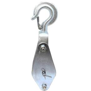 O gancho possui trava para maior segurança e polias de nylon de alto impacto, com uma durabilidade excelente.