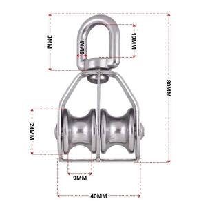 Infomações adicionais Nosso código: 5162 Material: aço inoxidável 304 Durável, forte, confiável, á prova d'água, antiferrugem, anti-alta temperatura, resistência á corrosão. Rolamento de carga: 150kg, adequado para corda de 9 mm Diâmetro do corredor: 25 mm, para informações detalhadas de tamanho, consulte as imagens Projetado para pendurar coisas pesadas para aliviar a carga. Para uso com corda em aplicações internas e externas Com anel de olho giratório pendurado na parte superior.