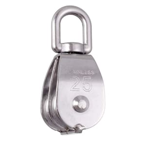 Itens incluso 01 moitão giratório duplo em aço inox 25mm