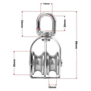 Infomações adicionais nosso código: 5163 material: aço inoxidável 304 durável, forte, confiável, á prova d'água, antiferrugem, anti-alta temperatura, resistência á corrosão. rolamento de carga: 250kg, adequado para corda de 9 mm diâmetro do corredor: 32 mm, para informações detalhadas de tamanho, consulte as imagens projetado para pendurar coisas pesadas para aliviar a carga. para uso com corda em aplicações internas e externas com anel de olho giratório pendurado na parte superior.