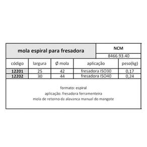 FORMATO: ESPIRAL; LARGURA: 30 MM; DIÂMETRO EXTERNO DA MOLA: 44 MM; MOLA DE RETORNO DA ALAVANCA MANUAL DO MANGOTE.
