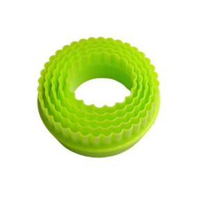 Molde Cortador Redondo Babado Pasta Americana Biscuit - Ydh Jogo de cortadores redondos e babado com 5 peças. O cortador em formato redondo. Possui cinco tamanhos diferentes, ideal para cortar pasta ou massas. Por não possuírem arestas afiadas, são seguros para serem utilizados até por crianças. Encaixam uns nos outros para melhor arrumação.