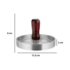 Molde Forma Para Hambúrguer Artesanal Modelador Manual 12cm Esse molde forma para hambúrguer é perfeito para preparar aquele hambúrguer artesanal caseiro e deixá-lo com cara de profissional Pode fazer aquele hamburgão ou até mesmo um smash burguer. Ajuda a otimizar o tempo, mantendo a qualidade e padrão de todos os hambúrgueres. Muito fácil de usar, o modelador possui duas peças em um você coloca a carne e o outro serve para pressionar e dar o formato, ele ainda possui pequenos frisos que ajudam a carne a ter uma cocção perfeita. Modo de uso: - Coloque um pouco de carne na forma e com a outra parte, prense levemente e seu hambúrguer estar pronto. Especificações: - Material: alumínio - Dimensões: 12cm diâmetro- Cabo em madeira Desenvolvido em alumínio, facilita a limpeza e evita que sejam liberados odores ou sabores de outros alimentos.