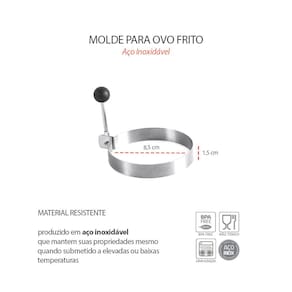 Contém:1 Molde para Ovo Frito Medidas: 10,5 x 8,5 x 1,5 cm Material: Aço Inoxidável Marca: Não Informado