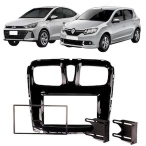 Moldura 2 Din Sandero e Logan 2015 à 2024 Preta Painel Central Multimidia 6.2 e 7 Polegadas Mp5 Som