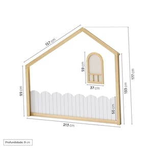 Deixe o quarto do seu filho ainda mais especial com a Moldura com LED e Janelinha da New Garden, uma peça encantadora que combina funcionalidade e design. A moldura possui uma estrutura robusta em madeira maciça, garantindo durabilidade e um toque natural ao ambiente. As partes brancas são feitas em MDF com pintura laqueada, proporcionando um acabamento impecável e suave. Um dos destaques é a fita de LED Quente, que contorna a parte superior (telhado) da moldura e emite uma luz quente e aconchegante, ideal para criar uma atmosfera relaxante na hora de dormir ou para iluminar a leitura de histórias. A fixação é simples e segura, realizada por parafusos. Esta moldura com janelinha é a escolha perfeita para adicionar um elemento lúdico e um ponto de luz suave, transformando o espaço infantil em um verdadeiro refúgio de sonhos. Acabamento: Verniz Ambiente Principal: Quarto Infantil codigo_ean: 7900288210173 Complexidade da Montagem: Média: pode ser montado por mais de uma pessoa e/ou necessite de maior conhecimento para montagem Cor: Natural/Branco Cor do Produto: Natural/Branco Escala de Brilho: Semi-Fosco Itens Inclusos: 1 Moldura, Kit Ferragens e Manual de Montagem Linha ou Coleção: New Garden Manual de Montagem e Instalação: https://product-hub-prd.madeiramadeira.com.br/763601336/documents/6b23dc83-ab8f-4a83-960e-89862aabee653126398338717546751447969.pdf Marca: Casatema Material Principal: Madeira Maciça Necessita Montagem: Sim Origem do Produto: Nacional Peso: 16 kg Recomendações de Uso, Manutenção e Limpeza: Na limpeza não utilizar produtos químicos e abrasivos, usar apenas com pano umedecido, para garantir a maior durabilidade do móvel. Sistema de Montagem: parafusos e cavilhas