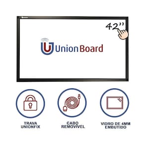Moldura interativa unionboard 32 Função: transformar sua tv convencional em touchscreen Dúvidas gerais sobre a moldura interativa unionboard: 1 o que eu preciso para utilizar a moldura interativa É necessário uma televisão e um computador pc / notebook 2 quais são os modelos de televisões compatíveis Todas as marcas e modelos com tela plana. Televisões com tela curva não são compatíveis. 3 como é realizada a conexão da moldura interativa -realize a fixação da moldura interativa a televisão -conecte o cabo usb da moldura no computador, para habilitar o toque. -conecte o cabo de imagem hdmi ou vga do computador a televisão. -pronto, sua televisão agora é touchscreen. 4 acompanha software de utilização -sim, todas as molduras interativas da unionboard acompanham o software unionboard pro. 5 a moldura interativa unionboard é compatível com quais sistemas operacionais - windows, linux, , android, chromebook, 6 é possível instalar a moldura interativa unionboard na vertical - sim, você pode utilizar a moldura da unionboard tanto na horizontal como na vertical. 7 a moldura interativa unionboard já vai com vidro - sim, a moldura já vai com o vidro de 4mm embutido que proporciona um touch mais preciso, estável e protege a tela Da sua televisão. 8 como é feita a instalação da moldura interativa unionboard - utilizando o sistema unionfix, a instalação é feita em 2 etapas. Primeiro com a fita dupla face, depois com as travas e cintas tencionadoras. 9 o usb é soldado na placa - um dos grandes diferenciais das molduras da unionboard é o sistema de plug via jst : ou seja o cabo não é soldado a placa, Facilitando a troca do mesmo e uma maior facilidade na manutenção e transporte 10 a moldura interativa unionboard possui quantos toques - até 20 toques simultâneos. 11 a moldura interativa unionboard esta disponivel em quais tamanhos - 32, 39, 40, 42, 43, 46, 47, 48, 49, 50, 51, 55, 58, 60, 65, 70, 75, 82, 85 e 86 Diferenciais unionboard - de 5 anos. - acabamento em preto fosco: discreto e elegante. - design exclusivo : o vidro não fica aparente na lateral da moldura. - funcionamento normal com usuários que utilizam luvas ou algum tipo de proteção nas mãos. - acompanha o unionboard software pro, software de interação de conteúdo mais completo do mercado. - instalação em diferentes tipos de tv com tela plana, tv com borda ultrafina, convencional e grossa. - cupholder, um suporte de canetas integrado, proporcionando facilidade e praticidade. - utilização na horizontal ou vertical. Itens inclusos: 01x moldura interativa unionboard 01x cabo usb/jst 02x canetas plásticas 01x software de utilização unionboard pro 01x kit de travas de fixação unionfix 01x cup holder 01x manual de utilização/instalação.