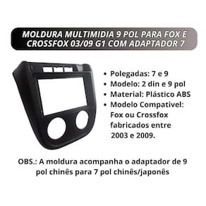 Moldura Multimidia 9 pol para Fox e Crossfox 03/09 G1 com Adaptador 7 Padrao Chi/Jap. Preta - Fiamon(5945)