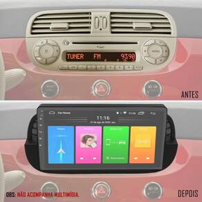Moldura Painel 2 Din 9 Polegadas Fiat 500 2007 Até 2014 Preto DESCRIÇÃO:
