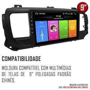 Moldura 9 Polegadas fabricada com tecnologia de alta qualidade e proporciona um design com acabamento impecável para seu veículo.