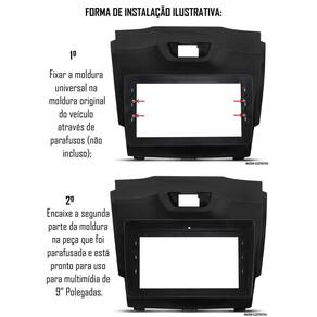 Descrição: tem a multimídia 9 polegadas mas não achou a moldura essa moldura é própria para multimídias 9 polegadas. A moldura é fabricada com tecnologia de alta qualidade e proporciona um design com acabamento impecável para seu veículo. Compatível com uma variedade de painel, a moldura deverá ser fixada na moldura do veículo através de parafusos não incluso . Características: - agora você pode instalar outro som no seu veículo sem tirar sua originalidade; - pode ser utilizada com rádios, centrais multimídias, dvd players de 9 polegadas; - acabamento impecável na cor preto preto fosco ; - encaixe perfeito e de fácil instalação/utilização; - longa durabilidade; - excelente acabamento.