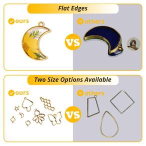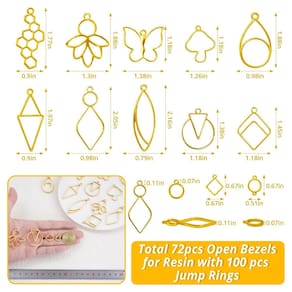 LET'S RESIN 172 peças de molduras abertas para resina, 2 tamanhos 36 estilos de moldura oca dourada com 100 anéis de salto, biséis de resina exclusivos para fabricação de joias, colares e brincos - Kit de fabricação de joias de resina de alto valor: o kit de moldes de resina de joias de metal inclui 172 molduras abertas para resina, com 72 peças de molduras de metal oco de vários tamanhos e 100 anéis de salto para atender às diversas necessidades criativas. As molduras para joias incluem 24 peças pequenas e 48 grandes molduras ocas. O kit de resina para fabricação de joias oferece uma variedade de estilos, é adequado para o uso diário, é fácil de personalizar e é a escolha ideal para fazer joias DIY. - 2 tamanhos 36 peças formas criativas disponíveis: os suprimentos para fabricação de joias incluem formas geométricas clássicas, como retângulos, diamantes, ovais, lágrimas e triângulos, bem como 12 designs exclusivos da Let's Resin. A variedade de formas e cores atende a diversas necessidades criativas, despertando inspiração e tornando seu molde de colar de resina único e requintado. - Criação amigável para iniciantes, sem pressão: fixe os biséis para fazer joias na fita, despeje a resina e adicione recheios como glitters, strass, cristais, pérolas, mini pingentes ou flores secas. Continue adicionando resina até que as molduras de resina estejam cheias. Assim que a resina curar, você terá uma joia exclusiva. Os suprimentos para fazer brincos oferecem um processo simples e agradável, perfeito para iniciantes criarem e se divertirem. - Material durável que não desbota. As molduras abertas para fabricação de joias de resina são feitas de liga de zinco premium, oferecendo excelente durabilidade e resistência. Os moldes de brincos de resina são resistentes ao desbotamento ou ferrugem, garantindo uso duradouro. Os moldes de resina para joias são leves com uma espessura ideal, tornando-os confortáveis e fáceis de usar, proporcionando uma ótima experiência de usuário. As joias de moldes de resina são perfeitas para criar artesanato de resina em vários estilos. - Versátil e criativo: os suprimentos de fabricação de joias de resina são perfeitos para criar uma variedade de acessórios de joias, incluindo colares, pulseiras, brincos, chaveiros e decorações de telefone. O kit de fabricação de brincos é compatível com resina epóxi e resina UV, permitindo que você crie joias artesanais exclusivas e requintadas. Seja para uso pessoal ou como presente, suas criações mostrarão individualidade e charme.