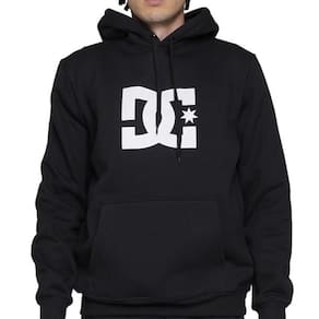 Moletom Dc Shoes fechado 280g, estampa frontal, bolso canguru, capuz com cordão ajustável e etiquetas personalizadas.