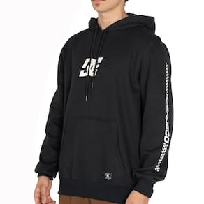 Moletom Dc Shoes fechado 270g, estampa frontal, estampa nas mangas, bolso canguru, cordão de capuz ajustável e etiquetas personalizadas.