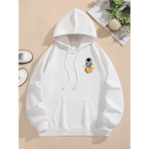 Moletom Feminino Casual com Capuz ElaShopp - Branco - GG