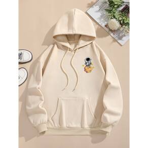Moletom Feminino Casual com Capuz ElaShopp - Bege - G