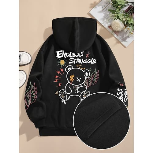 O toque aconchegante para os dias de outono/inverno, o Moletom com Estampa de Urso e Letras é a escolha perfeita para aqueles que buscam unir conforto, praticidade e estilo. Essa peça casual e versátil se destaca por sua combinação única de charme lúdico com praticidade urbana. Desde tardes relaxantes em casa até encontros informais com amigos, este moletom é um verdadeiro must-have no guarda-roupa masculino e feminino.