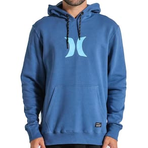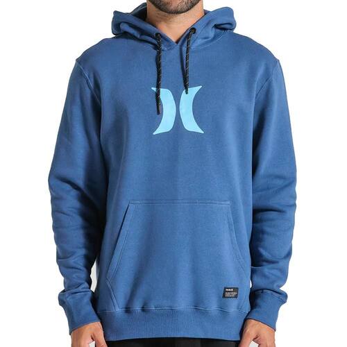 Moletom Hurley fechado 250g, estampa ICON frontal, capuz com cordão e bolso canguru com etiqueta.
