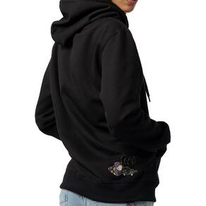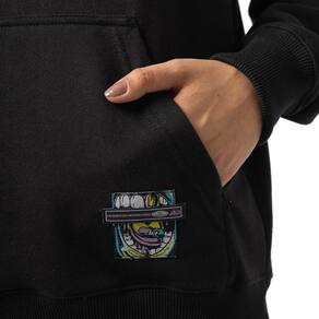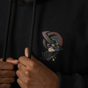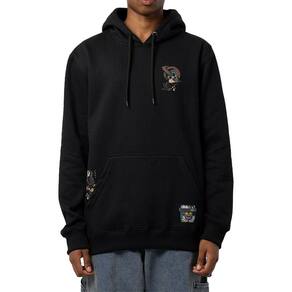 Moletom Lost com bolso frontal amplo, silk com efeito térmico, reagente ao fogo, estampas deslocadas, punhos e barra com elástico para maior proteção, estampas em tinta neon que reagem à luz negra e etiquetas personalizadas.