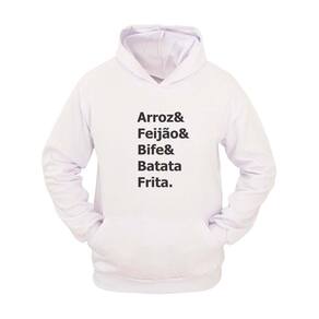 Moletom Masculino Canguru Capuz Estampa Bife & Batata - Branco - M