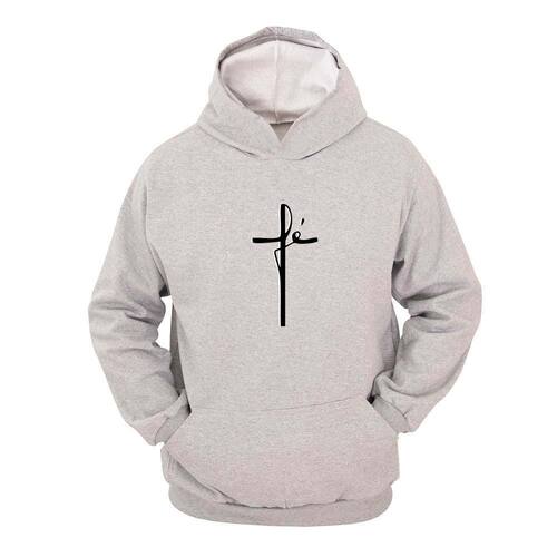 Moletom Masculino Canguru Com Capuz Estampa Fé Conforto - Cinza - M