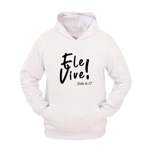 Moletom Masculino Canguru Estampa Ele Vive com Capuz - Branco - M