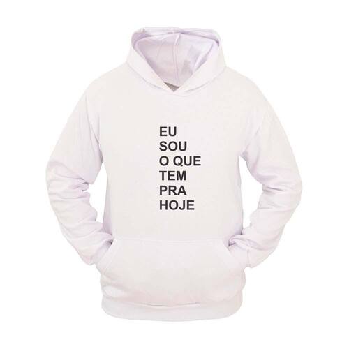 Moletom Masculino Canguru Estampa Eu Sou o que tem pra hoje - Branco - GG