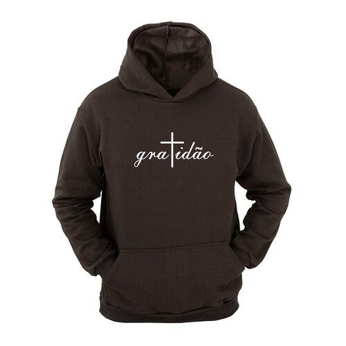 Moletom Masculino Canguru Estampa Gratidão com Capuz - Preto - GG